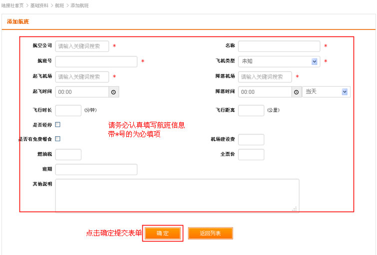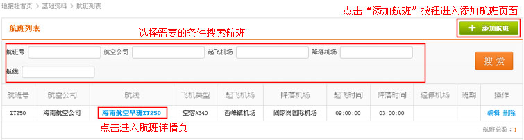 2.在导航条找到基础资料,点击“航班”进入航班列表页