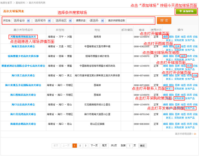 2.在导航条找到基础资料,点击进入球场列表页