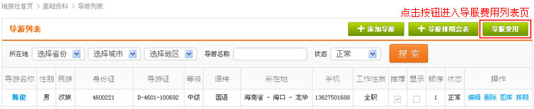 2.在导航条找到基础资料,点击进入导游列表页