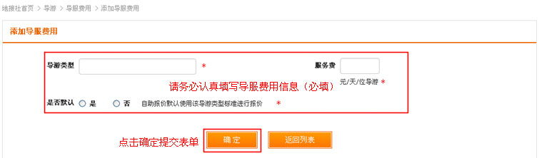 在添加导服费用页面认真填写信息后,点击提交表单。
