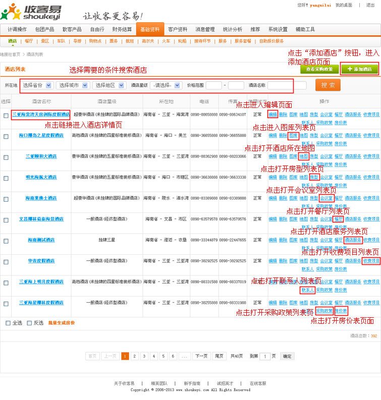 2.在导航条找到基础资料,点击进入酒店列表页