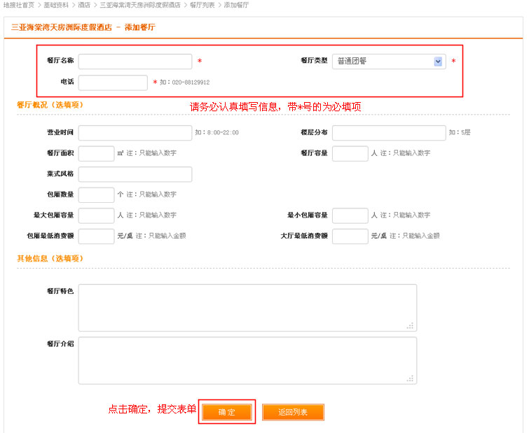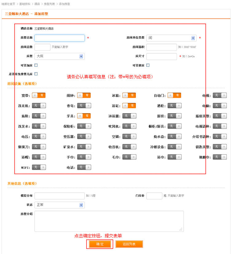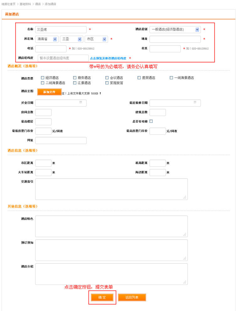 在添加酒店认真填写信息后,点击提交表单。