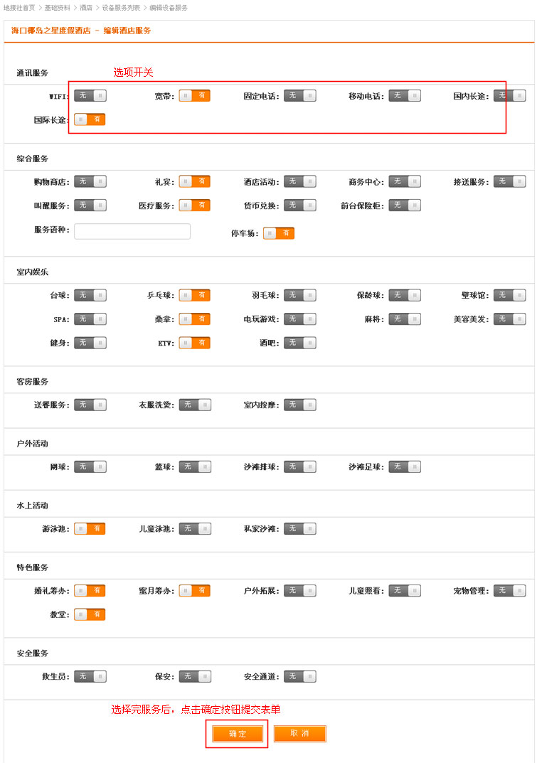 修改酒店服务