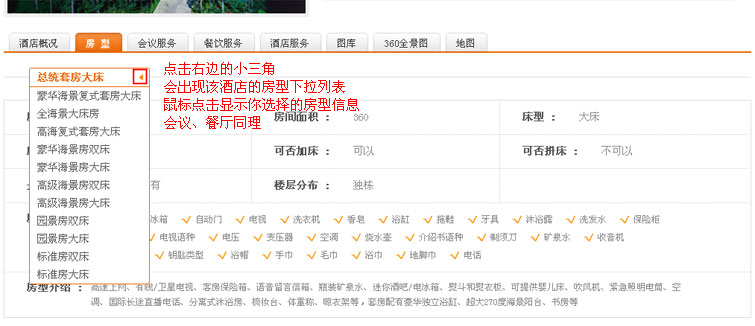 4.点击房型选项卡,可以选择不同房型查看信息