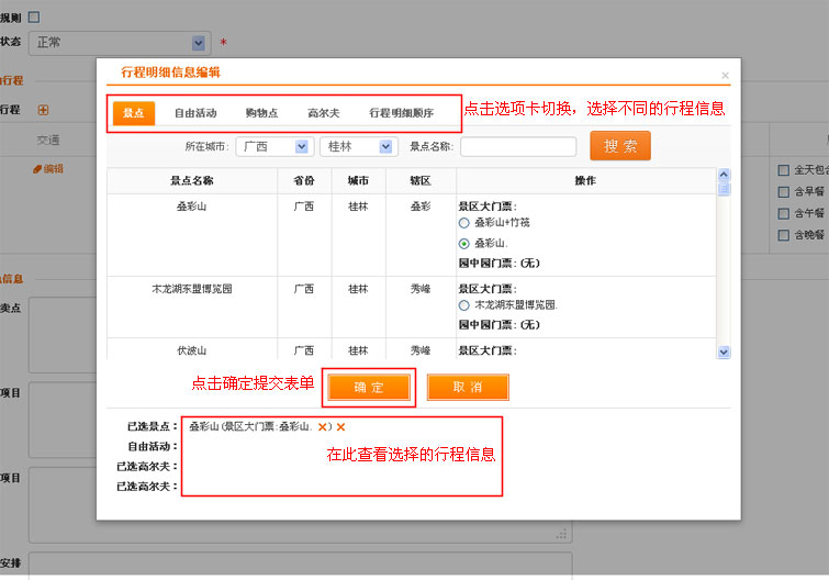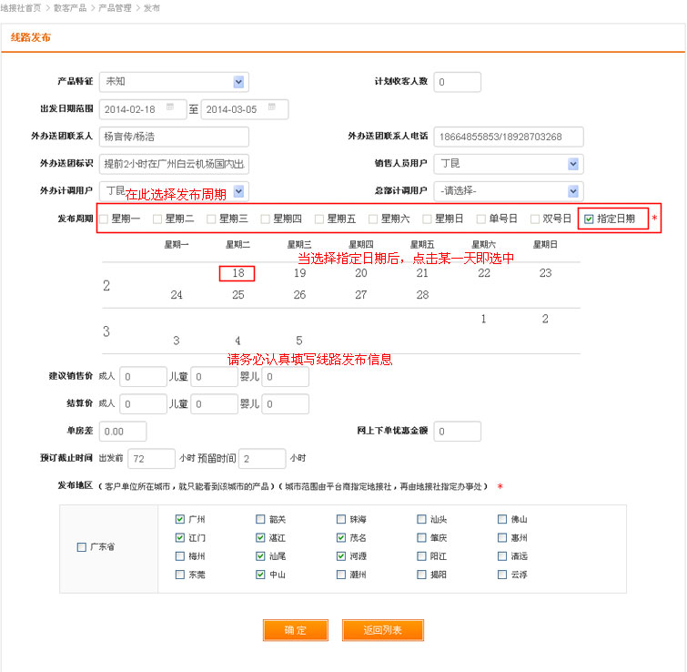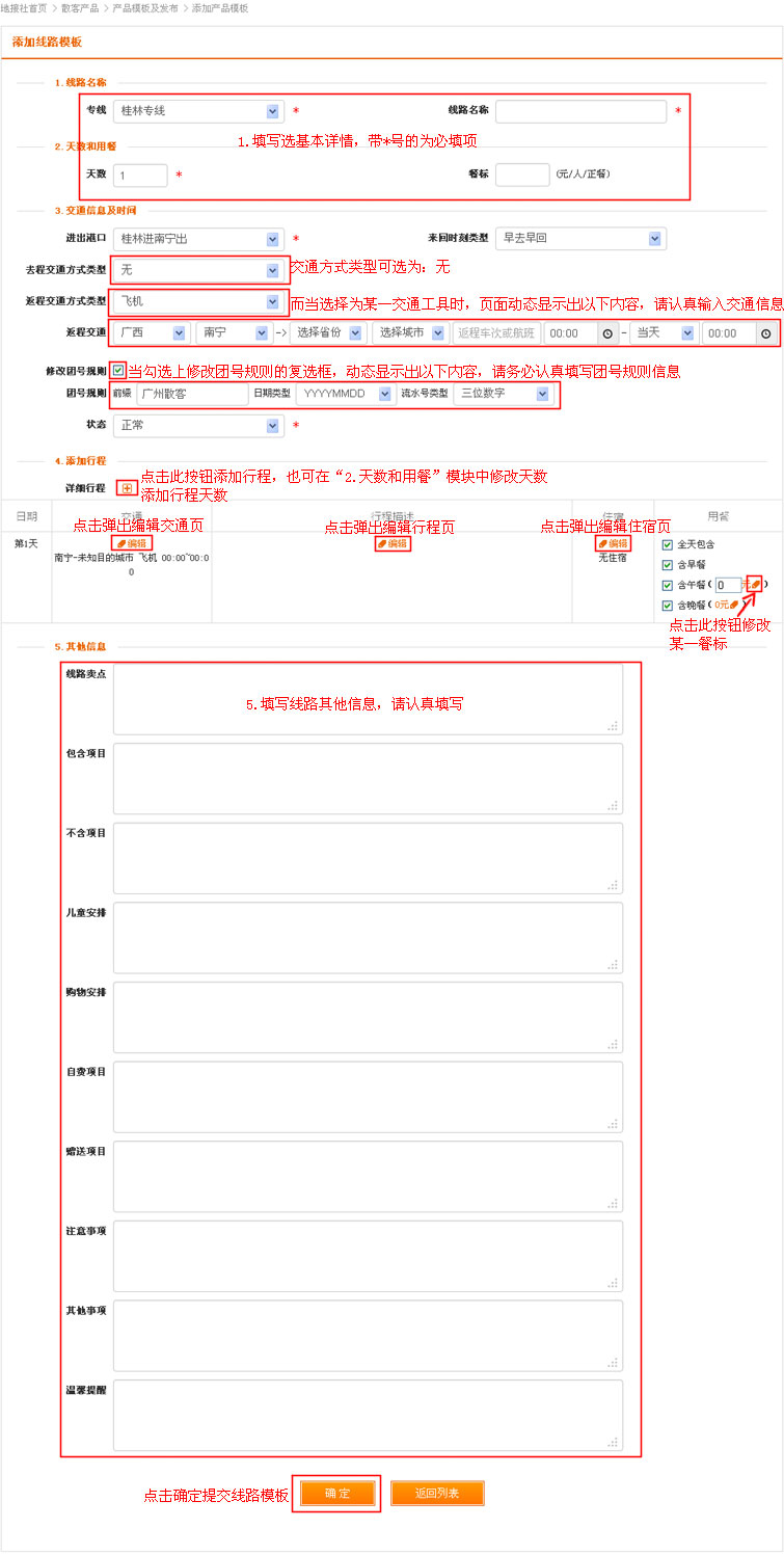 在添加产品模板编辑行程信息,注意以下