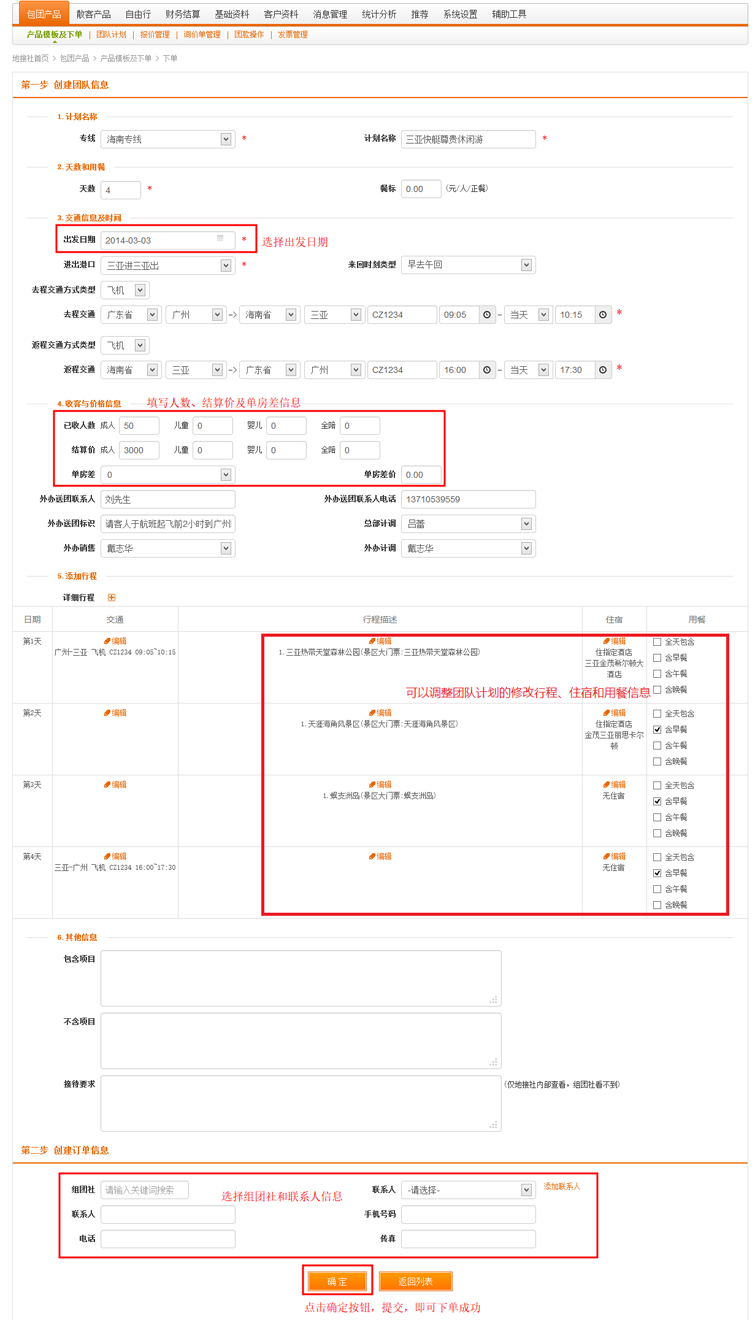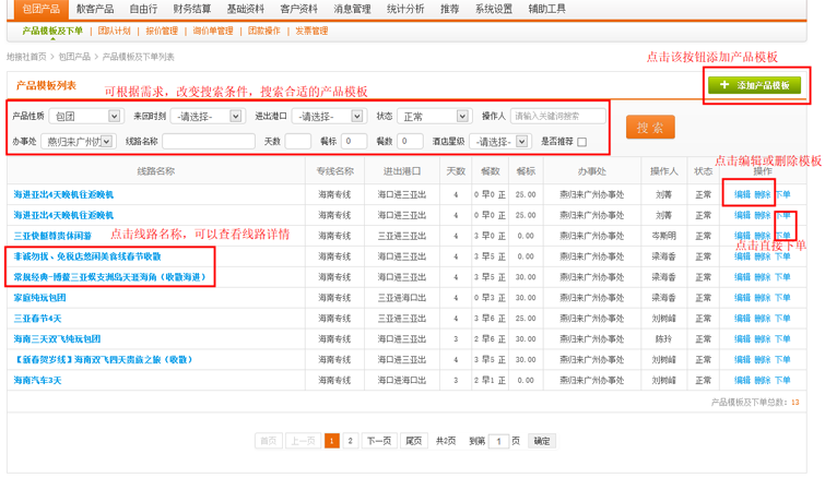 在导航条找到包团产品,点击选择二级导航的“产品模板及下单”,进入产品模板列表页面