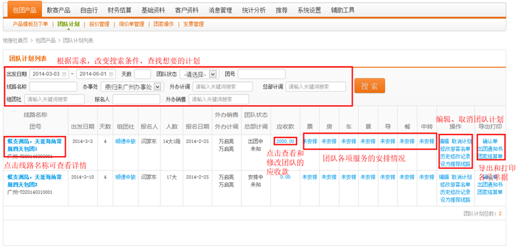 在导航条找到包团产品,点击选择二级导航的“团队计划”,进入团队计划列表页